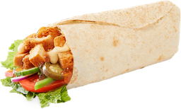 Chicken Fajita mit geschmolzenem Cheddar Käse, Spinat, Gurken, Jalapenos, Karotten, Mais, Chili-Flocken und Salsa Soße.