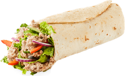 Thunfischcreme mit Schmelzkäse, Eisbergsalat, Tomaten, Gurken, roten Zwiebeln, Mais und Honey & Wholegrain Mustard Soße.